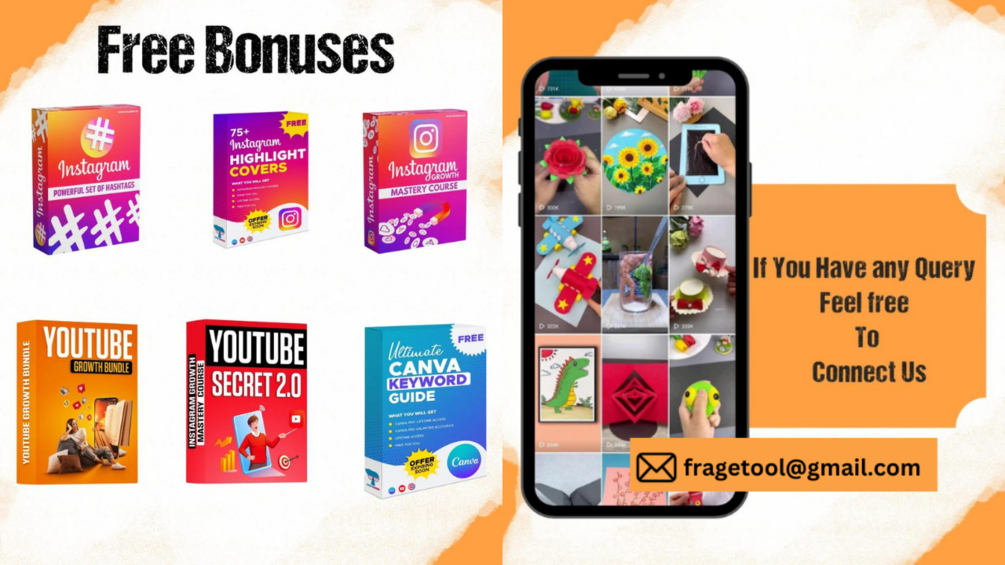 👉6 kostenlose Boni wie Instagram-Wachstumsbeherrschungskurs, YouTube-Secrets 2.0-Kurs, YouTube-Wachstumsvorlagen, Instagram leistungsstarkes Hashtags-Set, Canva-Highlight-Cover und ultimativer Canva-Schlüsselwortführer.